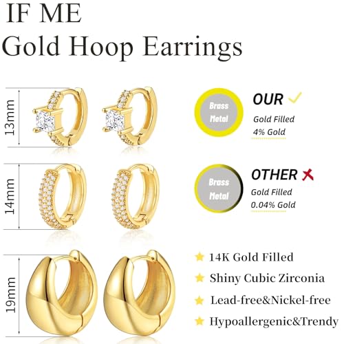 • Earrings for Women Trendy: This gold earrings set provides 3 different styles and designs, one retro gold hoop, another with pave hoop earrings, and finally a style with standalone Cubic Zirconia earrings, they are suitable for whole occasions and fulfill all your dressing needs