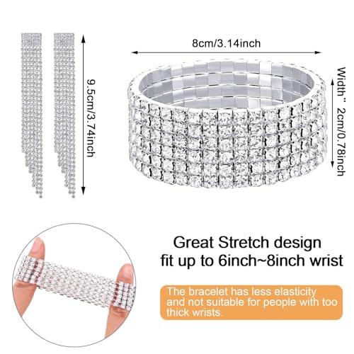 Hicarer 3 Pieces Women Rhinestone Jewelry Set Rhinestone Tassel Choker Necklace Fringe Bracelet Crystal Dangling Earring for Wedding Bridal Party