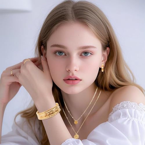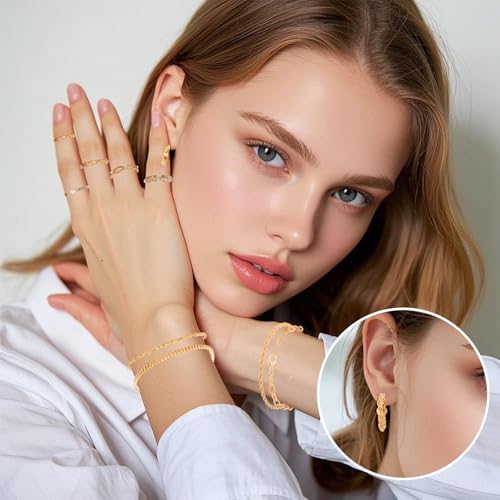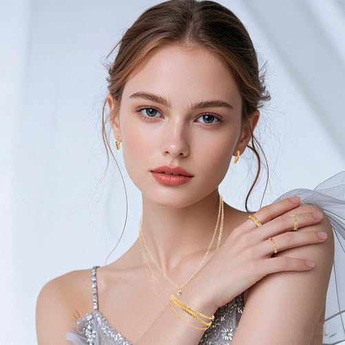 Fashionable Jewelry Set: This value for money jewelry set includes 4 necklaces, 12 gold bracelets, 12 kunckle rings and 6 pairs gold hoop earrings , totally 34 pcs, showing your charm with Bcxfbxd 34 pieces gold jewelry packsHigh Quality Material: This dainty trendy jewelry set, crafted from premium alloy, is lightweight, comfortable, and features double real gold plating for tarnish resistance. Our gold jewelry set ensure safe, reliable and lasting shine without skin irritation, making it safe and chic for long term wearExquisite Design: The Bcxfbxd gold jewelry set shows exceptional craftsmanship and attention to detail. Each piece within the value for money jewelry set has been thoughtfully designed to blend elegance and sparkle seamlessly. Delicate shiny rhinestones are expertly embedded, showing your noble and elegant temperament. Whether you're dressing up for a special event or simply daily style, the Bcxfbxd fashionable jewelry set is sure to become a a choice in your accessory collectionEasy to Match: The gold jewelry set for women has various styles, wear together or separately or match it with your other jewelry according to different occasions such as party, daily,wedding, holiday. This dainty trendy jewelry set offers endless styling possibilities, whether a special occasion or dailyPerfect Gift: This affordable jewelry set is the best anniversary gift for for friends, partners, couples, mothers, or even as a present for yourself. It's ideal for celebrating birthdays, Valentine's Day, Mother's Day, anniversaries, or any special occasion. A wide variety of dainty gold hoop earrings, necklace, rings, no duplicate styles, is both practical and stylish Perfect for everyday use. premium materials and excellent craftsmanship ensure long-lasting durability.