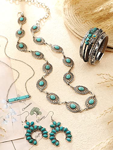 trending ! Nosiny 4 Pcs Bohemian Jewelry Turquoise Set for Women Western Turquoise Set Waist Belt Vintage Drop Earring and Necklace Boho Wrap Bracelet
