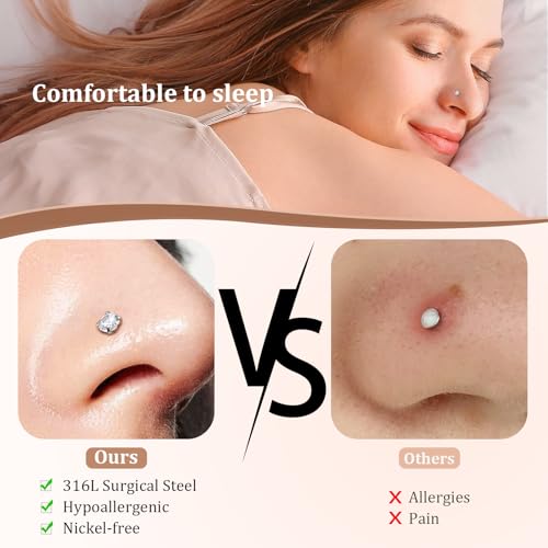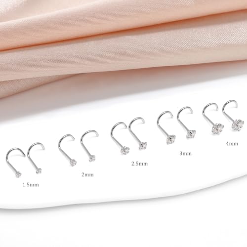 Item width: 1 inchesMaterial: Stainless SteelMetal type: Stainless SteelGem type: Cubic zirconia【Package including】10pcs silver nose screw rings adorned with clear cubic zirconia.【Product Size】Gauge: 20gauge (0.8mm). Pin Length: 7mm. Cubic Zirconia diameter: 1.5mm/2mm/2.5mm/3mm/4mm.【first-class Material】316 surgical stainless steel nose studs with AAAAA Shiny CZ inlaid. Hypoallergenic and lead-free, nickel-free, suitable for sensitive skin. Sturdy and durable, can be safely used for a long time. Has a High polished smooth surface and void of sharp edges, no irritation to your skin, lightweight, cozy for daily use.【Perfect Gift】This nose rings studs is delightful for both women and men, suitable for daily wear and special occasions. It's a perfect gift for birthdays, christmas, anniversaries, weddings,Valentine's Day, and more.【Our Satisfaction Promises】 Please contact us if you have any issue with this earrings, our customer service team is available 24/7 to assist you. We'll solve your problems within 24h. Your satisfaction is our top priority. Perfect for everyday use. High quality materials and excellent craftsmanship ensure long-lasting durability.