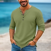 Why Choose Men's Cotton Linen Shirt Henley Shirt Tee Long Sleeve Henley Summer entire Seasons Solid Color Plain Fashion Designer Casual Color Block Buttons Outdoor Casual Daily White Pink Blue Top Tee for Men?
