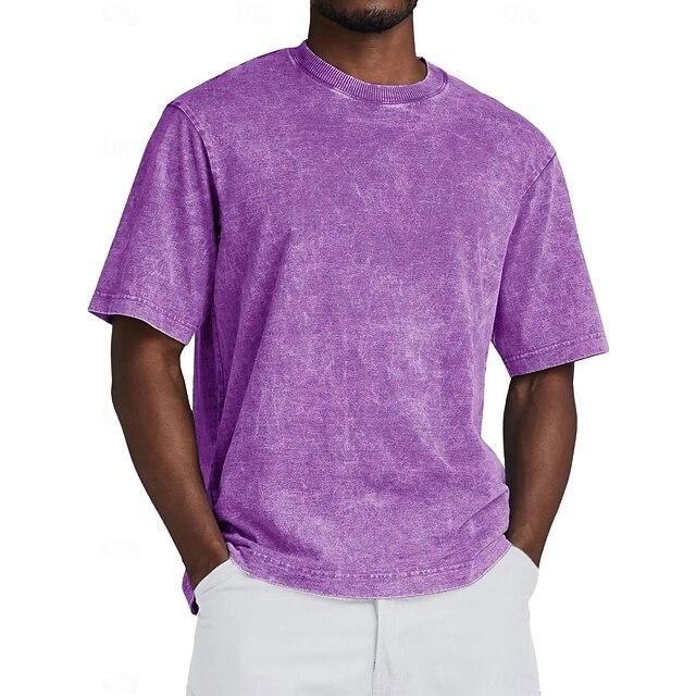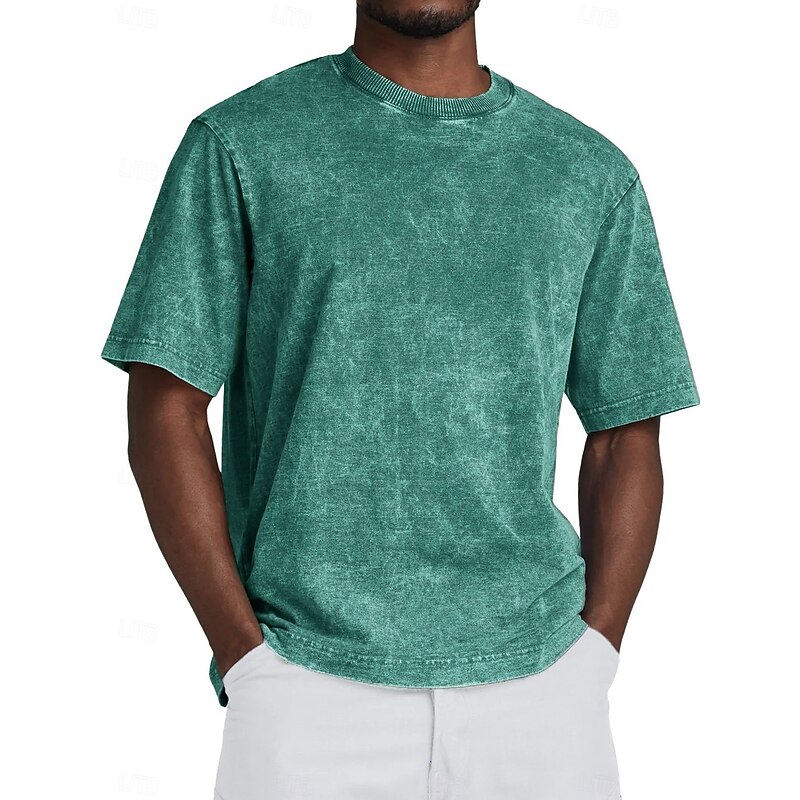 More information about Men's Tee Tee Top Short Sleeve Crewneck Summer Fall Retro Solid / Plain Color Fashion Designer Nostalgic Fashion Vintage Vacation Street Going out Black Light Green Sky Blue Top Tee for Men