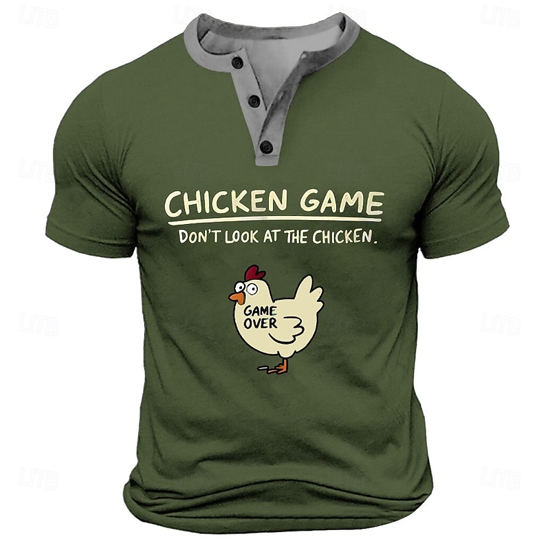 trending ! Men's Short Sleeve Henley T-Shirt Funny Chicken Game Don't Look At The Chicken Graphic Tee
