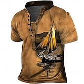 More information about Men's Retro Sailboat T Shirt Henley Shirt Tee Short Sleeve Vintage Designer Basic Outdoor Casual Daily Summer Khaki Henley Henley T-Shirt