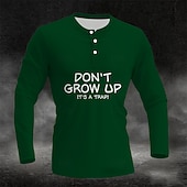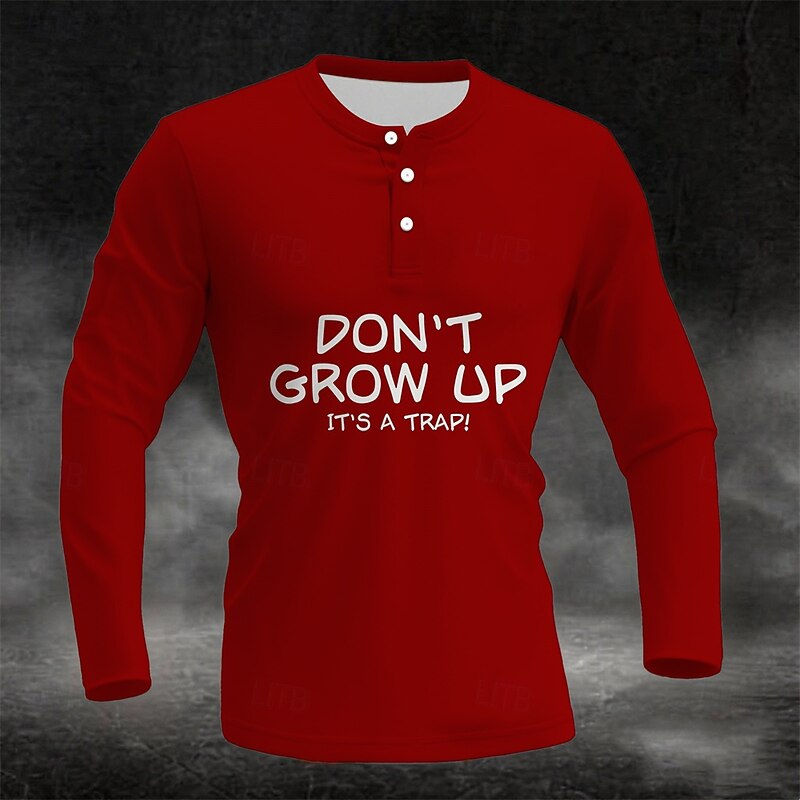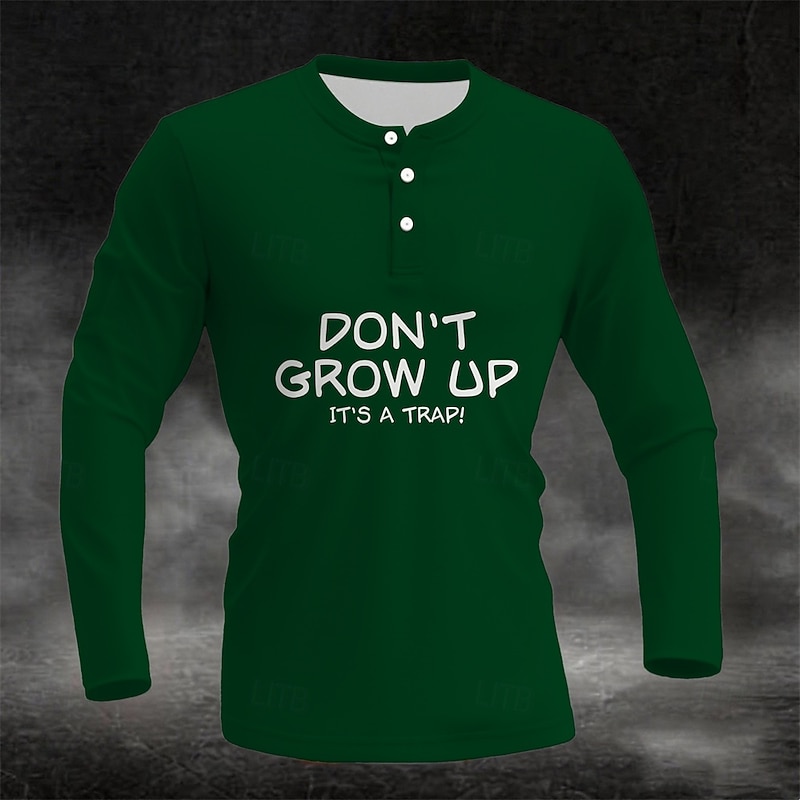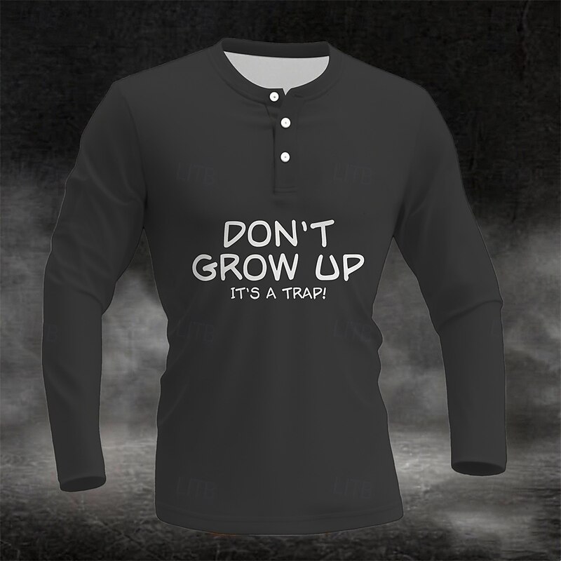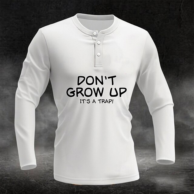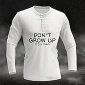 trending ! Men's Long Sleeve Henley T-Shirt - Don't Grow Up It's a Trap! White Humorous Lifestyle Graphic
