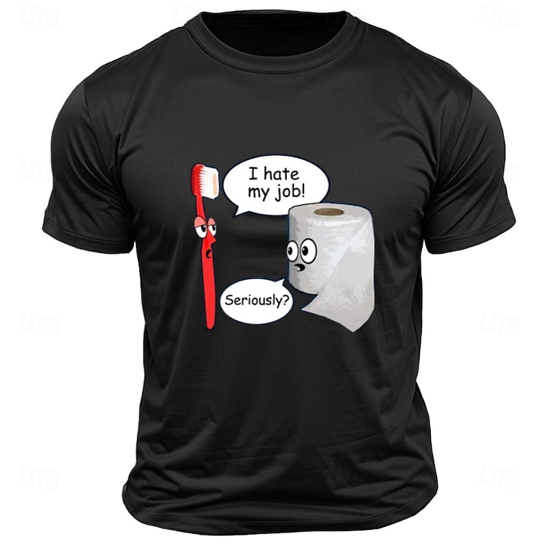 Highlights [Fabric] : Crafted from 100% cotton, this T-shirt is designed to offer a soft and breathable experience, ensuring maximum comfort for everyday wear. The fabric is smooth and lightweight, providing a micro-elastic fit that adapts easily to the body's movements. [Fit] : Featuring a regular fit, this T-shirt has a classic crew neckline and short sleeves for a versatile look that suits a range of body types. The relaxed cut allows for easy styling, whether layered or worn alone. [Design Highlights] : The T-shirt showcases a playful letter print with a humorous graphic depicting a cartoon dialogue between a toothbrush and a toilet paper roll. This special design adds a touch of whimsy and fun to your casual wardrobe. [Occasions] : Ideal for spring and summer outings, this T-shirt is perfect for sports, outdoor activities, and streetwear. Whether you're heading to the park, meeting friends, or just enjoying a day out, this T-shirt adds a playful element to any casual ensemble. [Size Range] : Available in a variety of colors, including White, Black, Dark Blue, Army Green, and Dark Grey, this T-shirt comes in sizes S, M, L, XL, and XXL, offering a wide range of options to ensure the perfect fit for adults. Perfect for everyday use. premium materials and excellent craftsmanship ensure long-lasting durability.