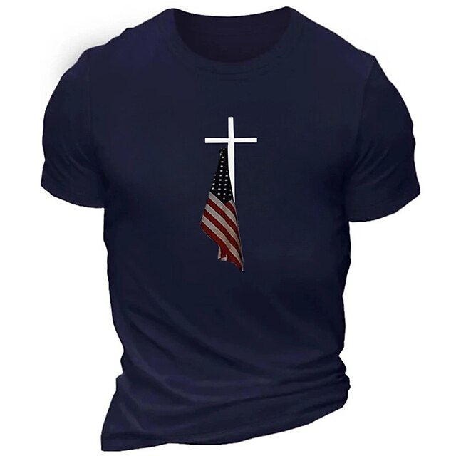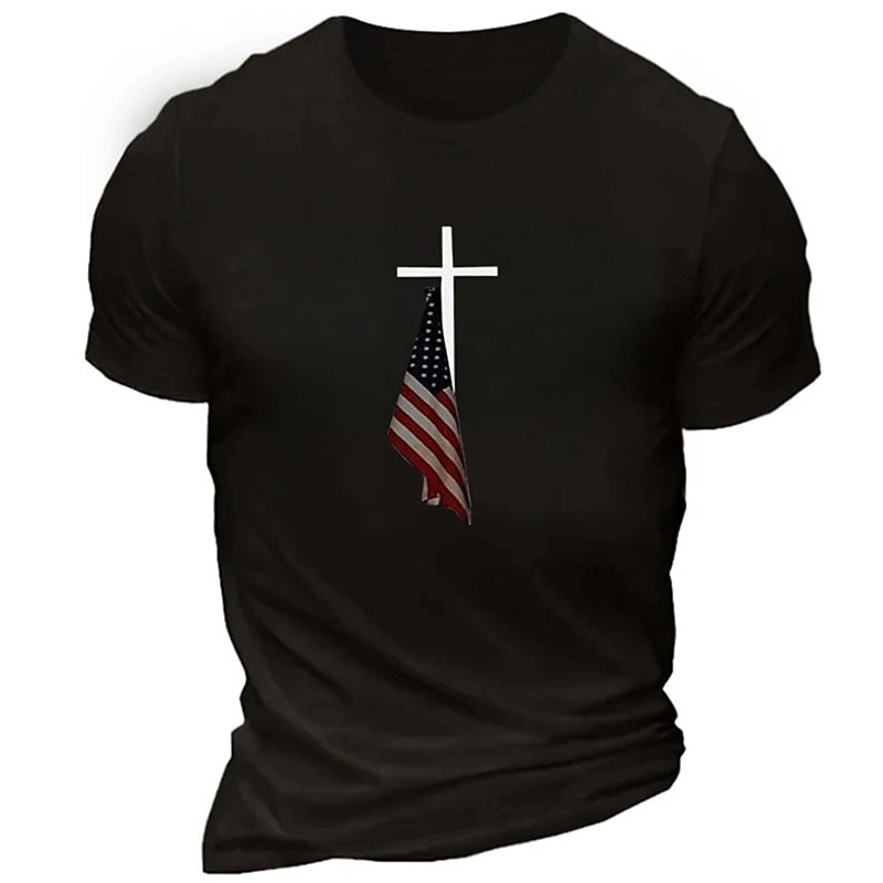 More information about Men's Patriotic Christian Cross American Flag Graphic Short Sleeve T-Shirt