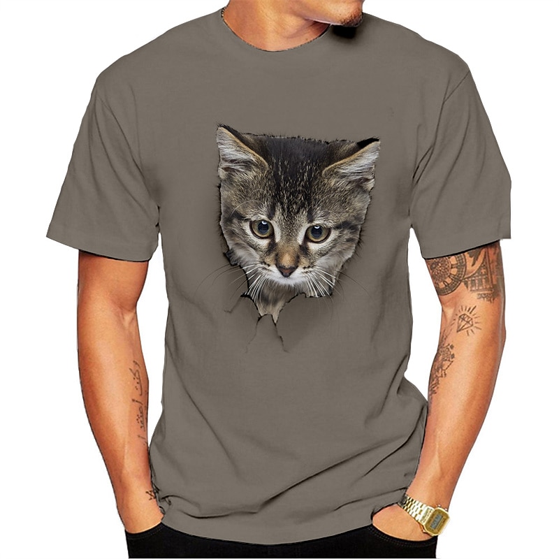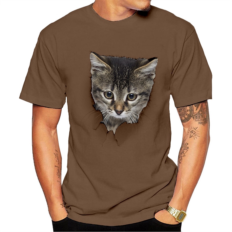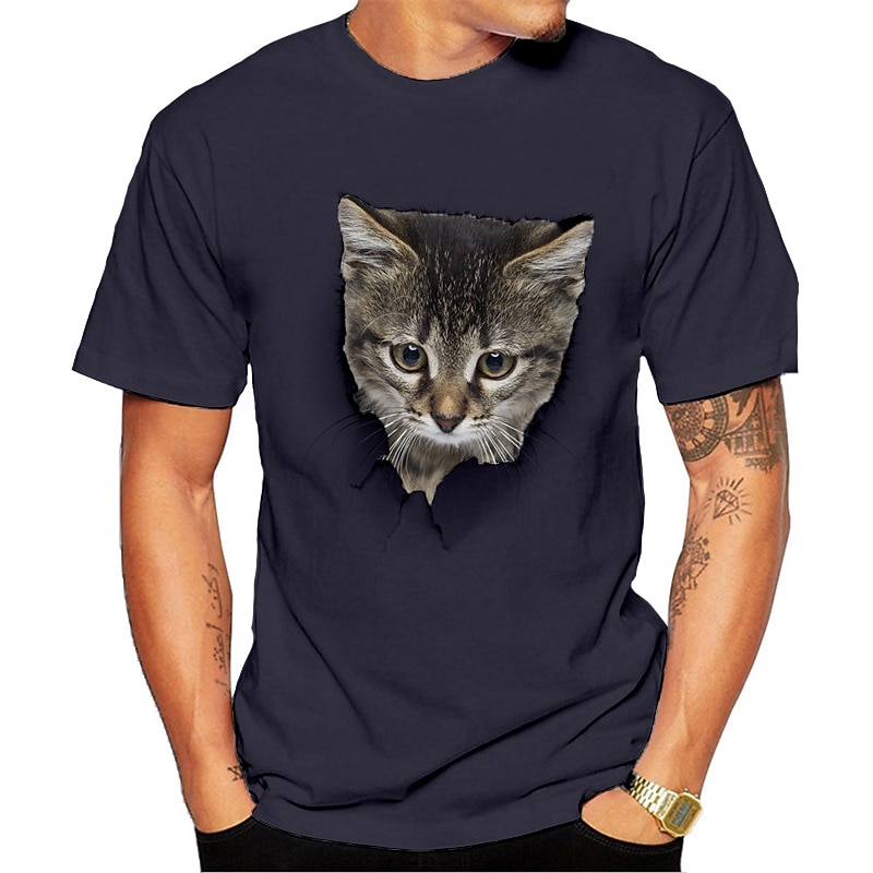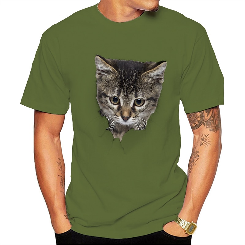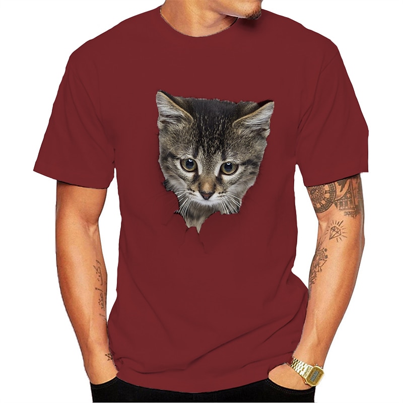 Featuring a striking 3D graphic of a cat playfully peeking through the fabric, this T-shirt is designed for those who appreciate distinctive and fun fashion statements. Its vibrant design adds a touch of whimsy while maintaining a versatile and fashionable look.