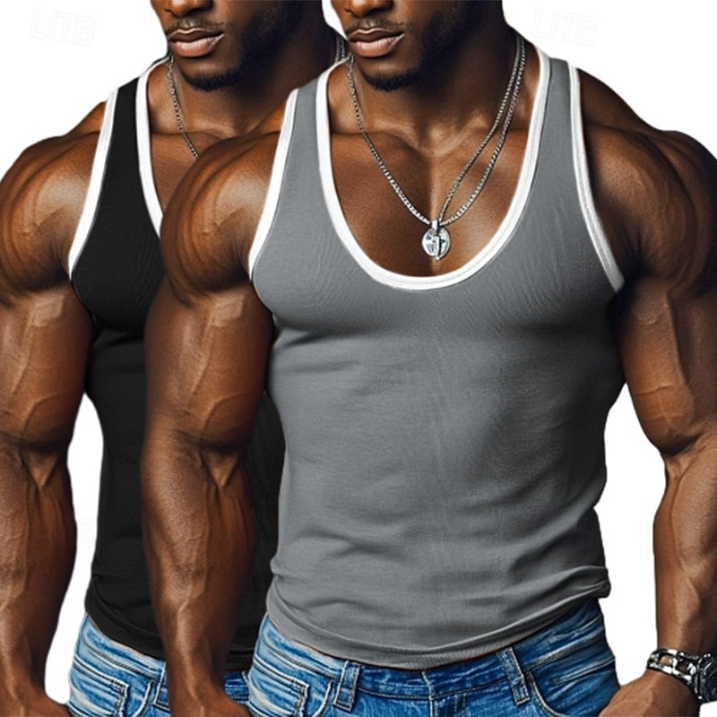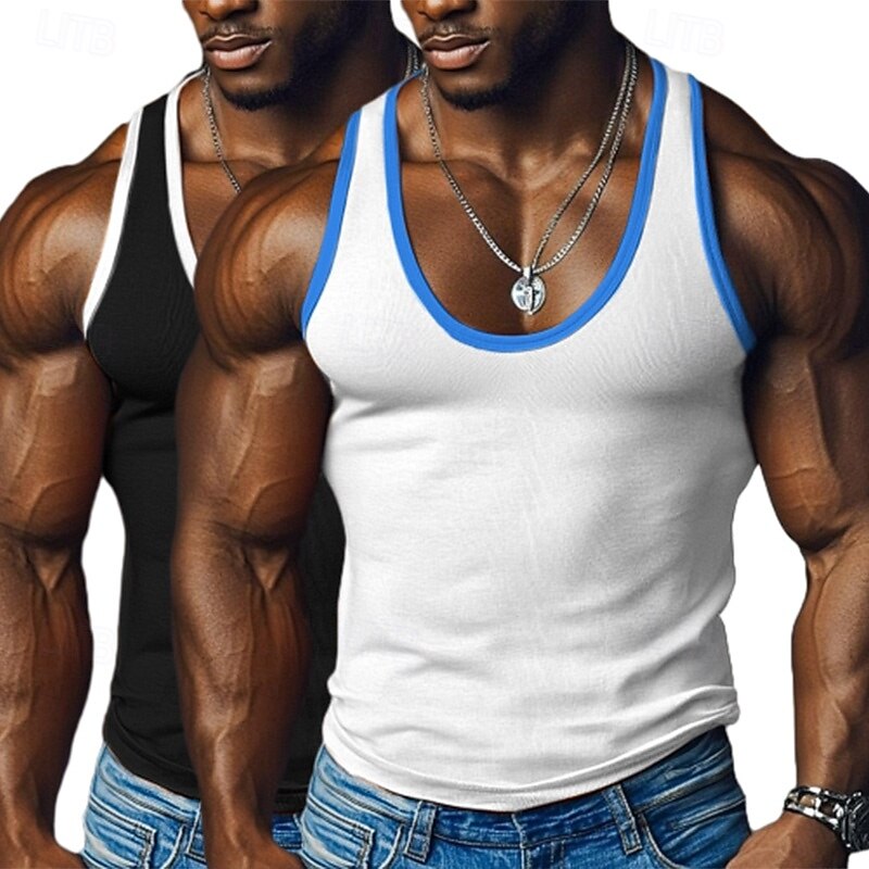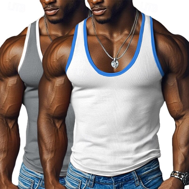 More information about 2 Piece Men's Tank Top Undershirt Sleeveless Shirt Wife beater Shirt Sleeveless U Neck Deep U Scoop Neck Summer Color Block Pit Strip Fashion Designer Sporty Plain Outdoor Casual Going out Orange