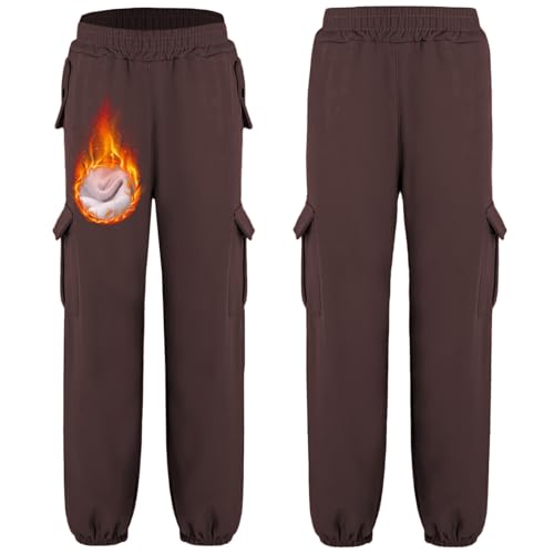 trending ! Aislor Kids Boys Girls Cargo Sweatpants Fleece Lined Casual School Pants Autumn Winter Cargo Trousers with Pockets