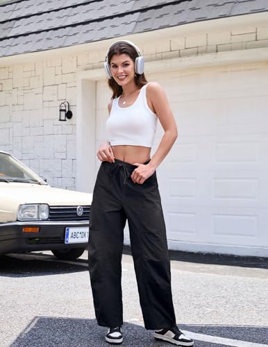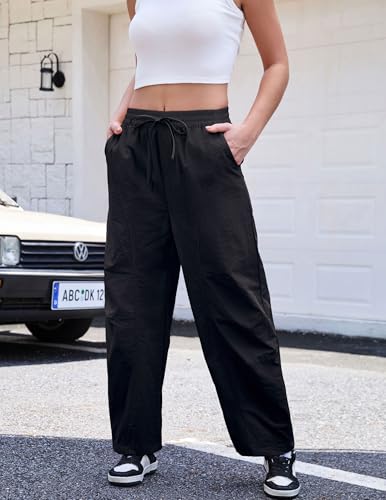 Women's Barrel Parachute Pants 2025 - High Waist Wide Leg Cargo Casual Drawstring Lightweight Hiking Trousers