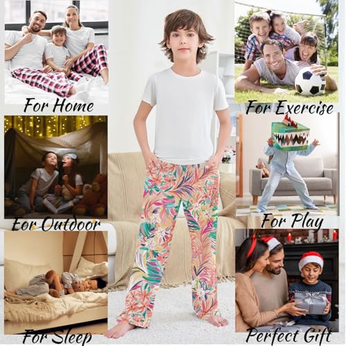 visesunny Boys Pants Tropical Artwork Pattern silky Long Bottoms Jogger Pants Elastic Waist Trousers with Pockets XL