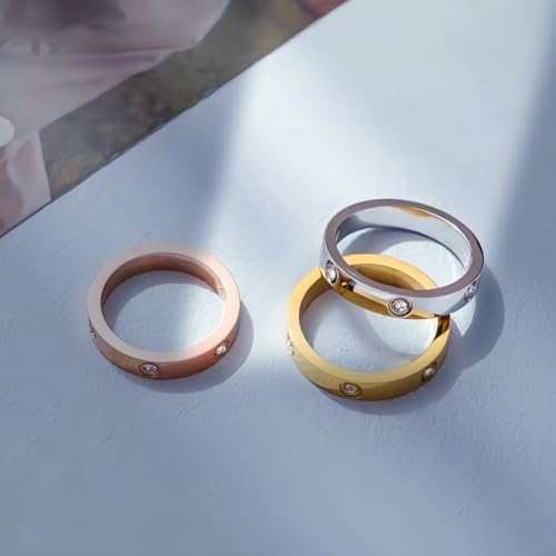 Ring size: 5Material: CrystalMetal type: Stainless SteelGem type: Cubic Zirconia【MATERIAL】Made from hypoallergenic 316L stainless steel. Our love ring bright and shiny with smooth edges all around, this elegant rings are very cute and well made. You will get many compliments and focus when you wear it. The more attractive is that this stunning love heart embed ring is neither light nor heavy, convenient to carry, also can be easily put in any jewelry box,and can be worn alone or with other jewelry, reflect your charm.【PACKAGE QUANTITY】Our products each package has 3 different color rings, gold, silver and rose gold.This set is more suitable for different styles of everyday wear. This love rings symbolizes true love and faith.Perfect for your loved one or yourself.【PRODUCT SIZE】The band width of this love rings are 4.5mm.The sparkle zircon and love heart have been perfectly intersect embed on the ring which fully illustrates love makes you more beautiful.Perfect everyday accessory to add a little style to your outfit.【EXQUISITE GIFT】It is a great gift idea for your best friends, sister, wife, mother and so on. It's the perfect gift for Mother's Day,Birthday, Valentine's day, Christmas, Graduation,Thanks giving or just because.[CUSTOMER SERVICE] If there are any problems with the purchase, please feel free to contact us.wish you a happy life,Thank you. Perfect for everyday use. first-class materials and excellent craftsmanship ensure long-lasting durability.