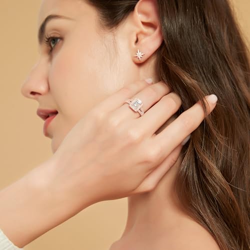 trending ! Mameloly 2CT Engagement Rings for Women Emerald Cut Cubic Zirconia Wedding Band Curved Halo Promise Rings for Her Size 4-11