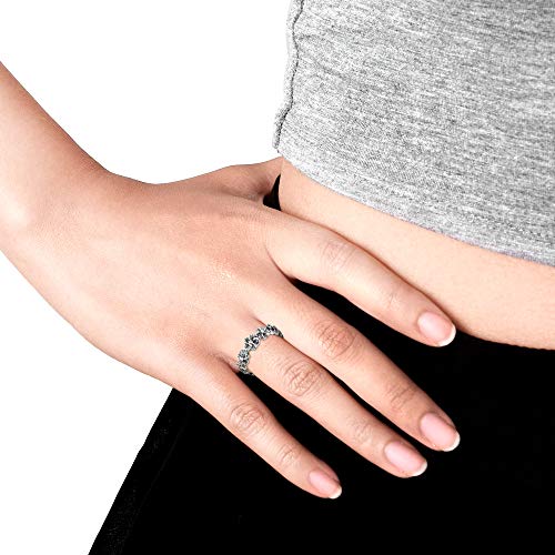AeraVida Sterling Silver Plumeria Ring – Dainty Floral Eternity Band with Oxidized Finish, Hawaiian Flower Stackable 925 Silver Ring for Women, Boho Summer Jewelry Gift