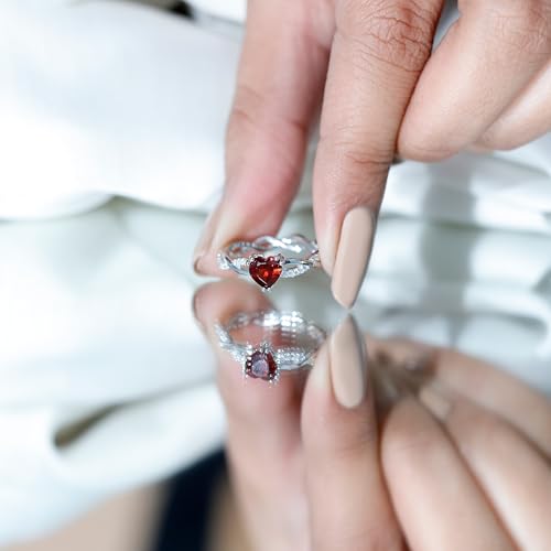 Real Garnet 6 mm Heart Engagement Ring in Silver, AAA Quality, Certified Garnet Moissanite Proposal Ring - Ready To Gift