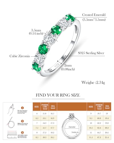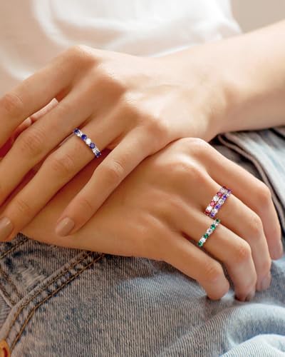 trending ! AIBAO Half Eternity Band Rings 925 Sterling Silver Wedding Ring Amethyst/Emerald/Ruby/Sapphire Stackable Birthstone Rings for Women Size 6 to 10