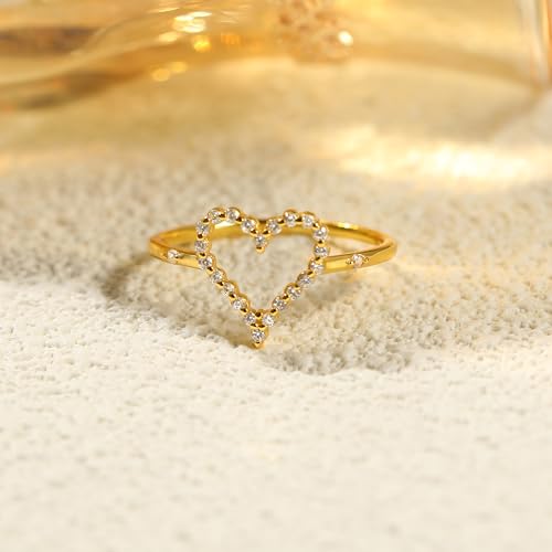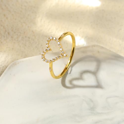 925 Sterling Silver Heart CZ Promise Ring for Women 14K Gold Plated Hollow Shiny Elegant Rings to Daughter Mother Dainty Stackable Ring 2025 Wedding Christmas Jewelry Gifts for Her Size 5-12