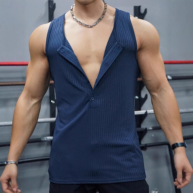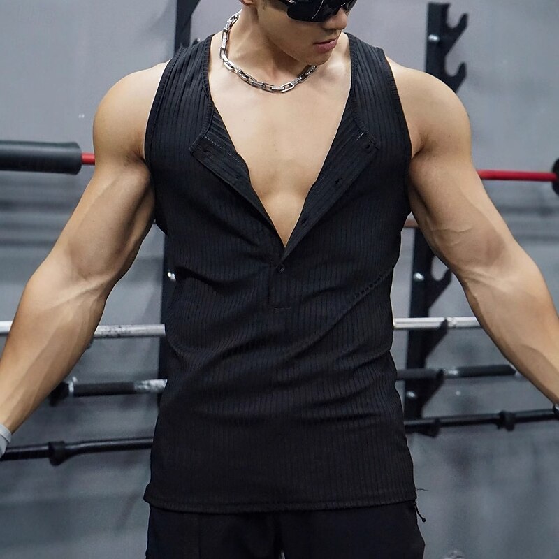 More information about Men's Tank Top Sleeveless Shirt Muscle Shirt Wife beater Shirt Sleeveless Henley Summer Color Block Vertical Stripes Pit Strip Fashion Designer Casual Sporty Ribbed Fitness Gym Black White Dark Red