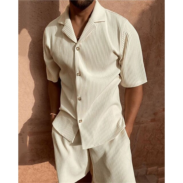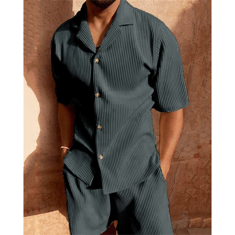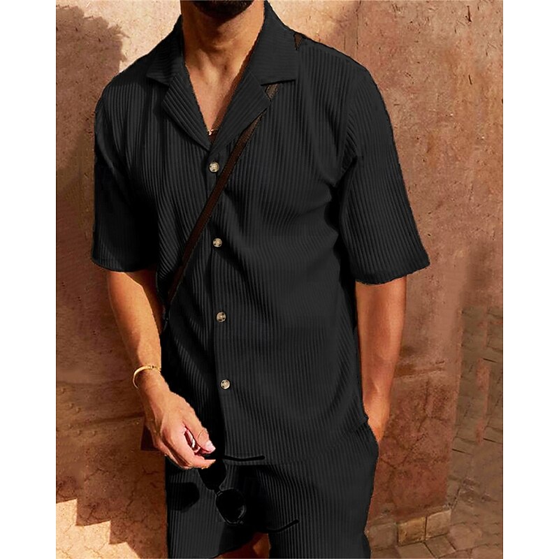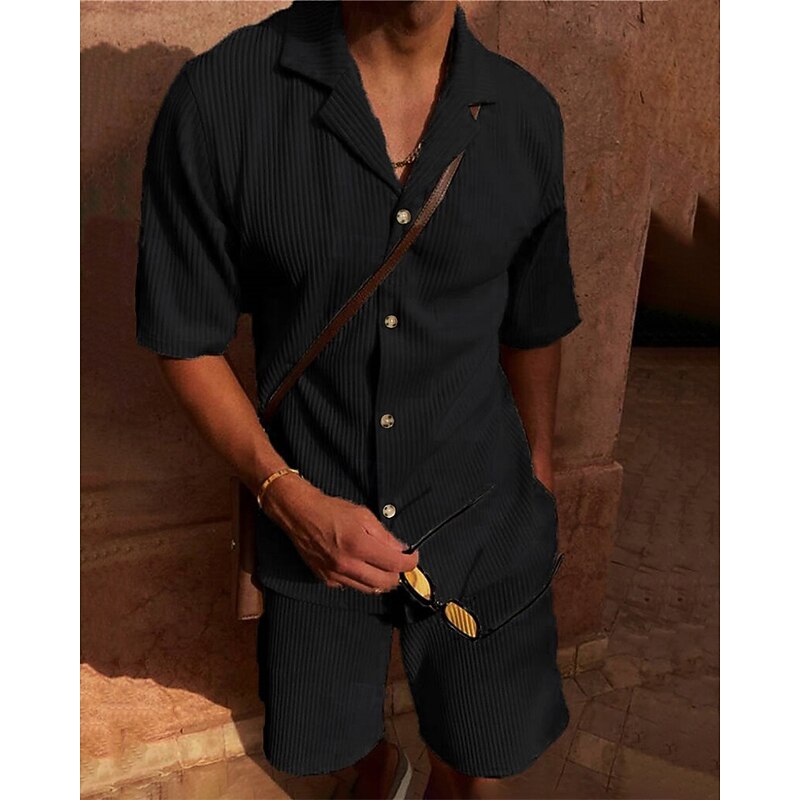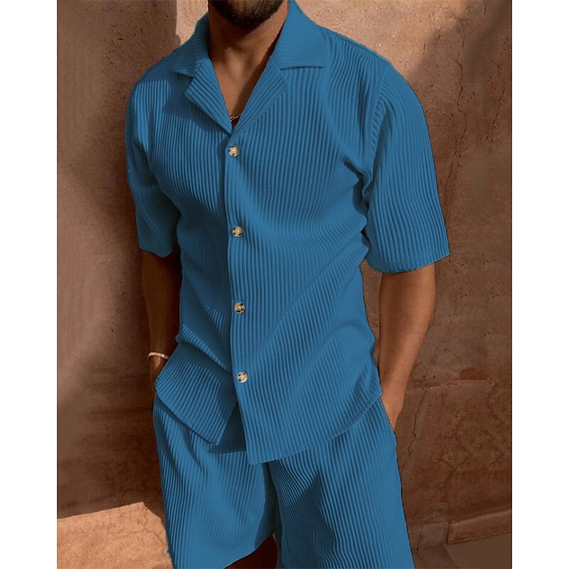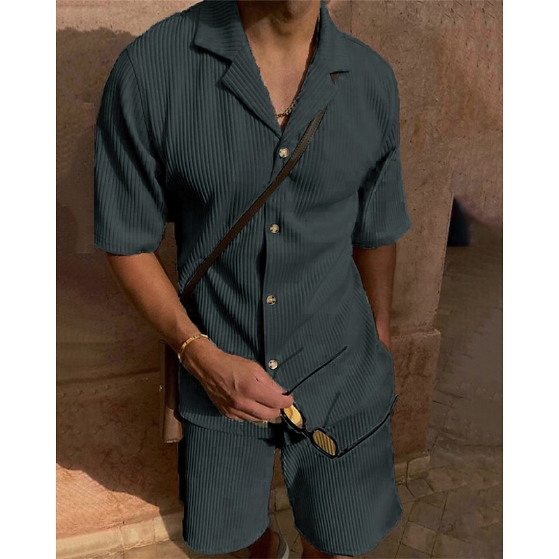 More information about Men's Corduroy Shirt T-shirt Suits 2 Pieces Outfits Tee & Shorts Short Sleeve Lapel Summer Plain Fashion Casual 2 Piece Vacation Daily Wear Going out Black Pink Blue Top Tee for Men