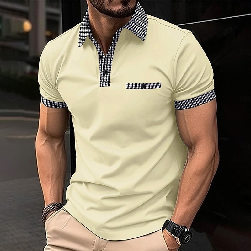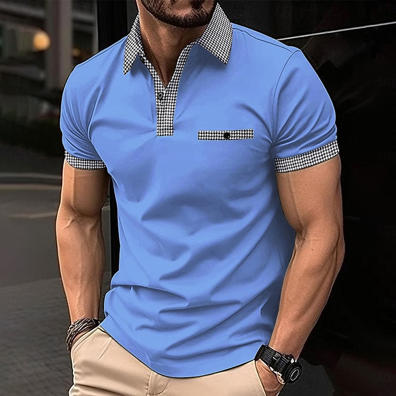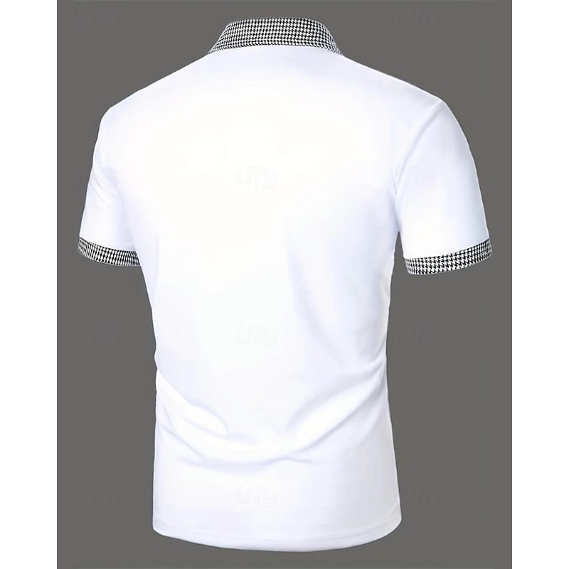 More information about Men's Golf Shirt Golf Polos Shirts Work Casual Lapel Short Sleeve Basic latest-age Color Block Houndstooth Patchwork Spring & Summer Regular Fit Black White Red Navy Blue Blue Beige Golf Shirt