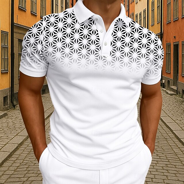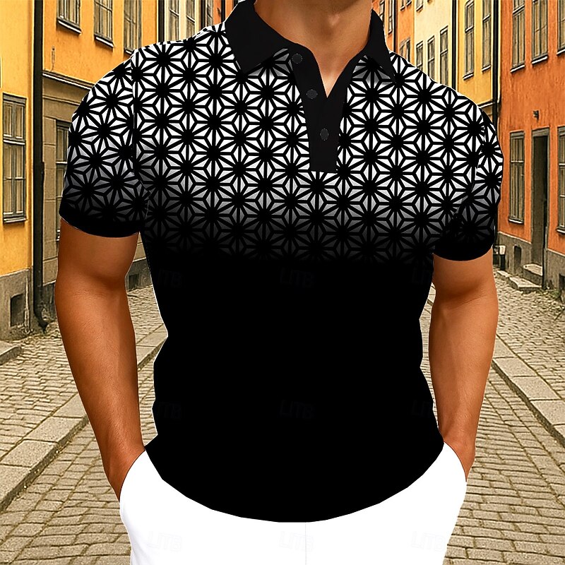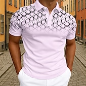 trending ! Men's Geometic Polo Short Sleeve Polo Shirts Collared Shirts Business Casual Athleisure Daily Wear 3D Print Buttons Summer Black White Pink