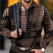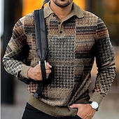 trending ! Men's Plaid Polo Shirts Golf Shirt Long Sleeve Polo Shirts Collared Shirts Vintage Casual Vacation Wear Formal Wear Festival Wear 3D Print Buttons Dark Brown Blue Chocolate
