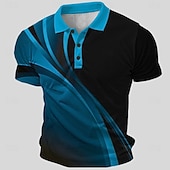 More information about Men's Geometric Waffle Polo Shirts Golf Shirt Short Sleeve Polo Shirts Collared Shirts Vacation Wear Formal Wear Festival Wear Buttons 3D Print Summer Spring Blue