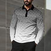 More information about Men's Geometric Polo Long Sleeve Polo Shirts Lapel Business Casual Outdoor Business Daily Wear 3D Print Buttons Spring Fall Black-white