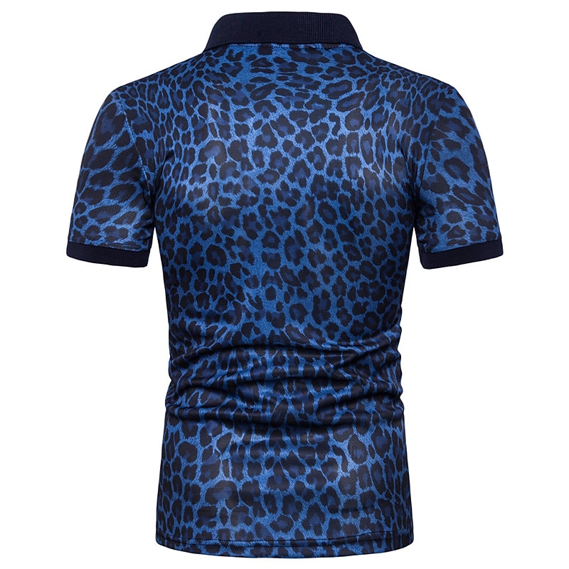 Men's Leopard Polo Shirts Golf Shirt Short Sleeve Polo Shirts Collared Shirts Casual Streetwear Vacation Wear Buttons 3D Print White Yellow Navy Blue
