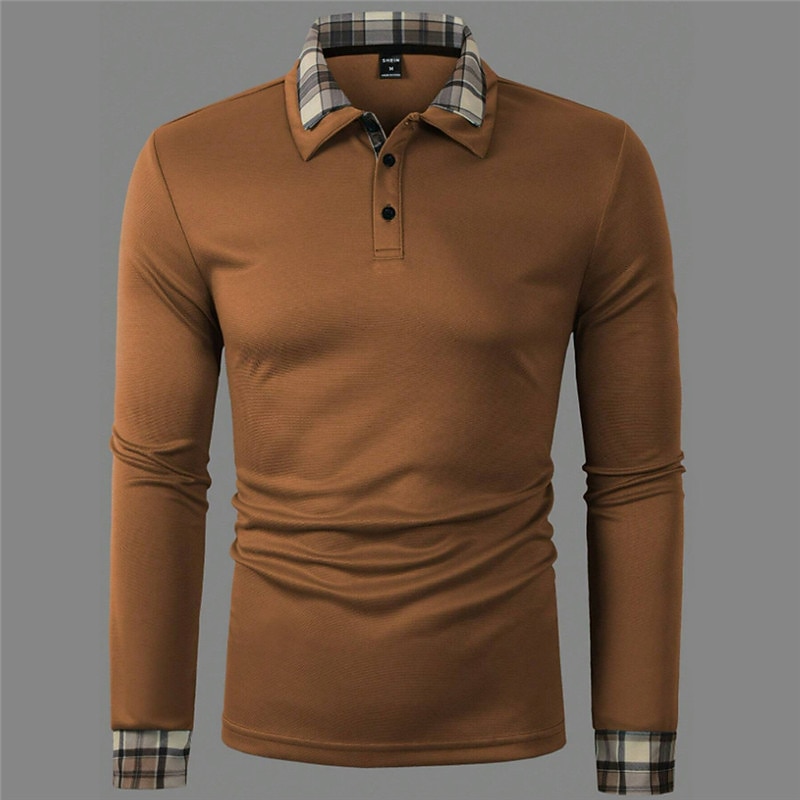 Why Choose Men's Button Up Polos Polo Shirt Casual Sports Lapel Long Sleeve Fashion Basic Plaid Color Block Button Spring & Fall Regular Fit Black Red Blue Brown Button Up Polos?