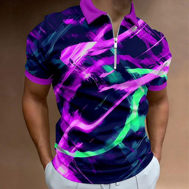 Why Choose Men's Graphic Zip Polo Shirts Golf Shirt Short Sleeve Polo Shirts Collared Shirts Vacation Wear Rave Wear Party Outfits 3D Print Quarter Zip Polo Spring & Summer Red Purple?