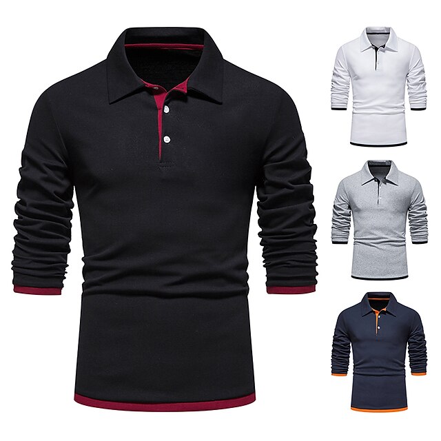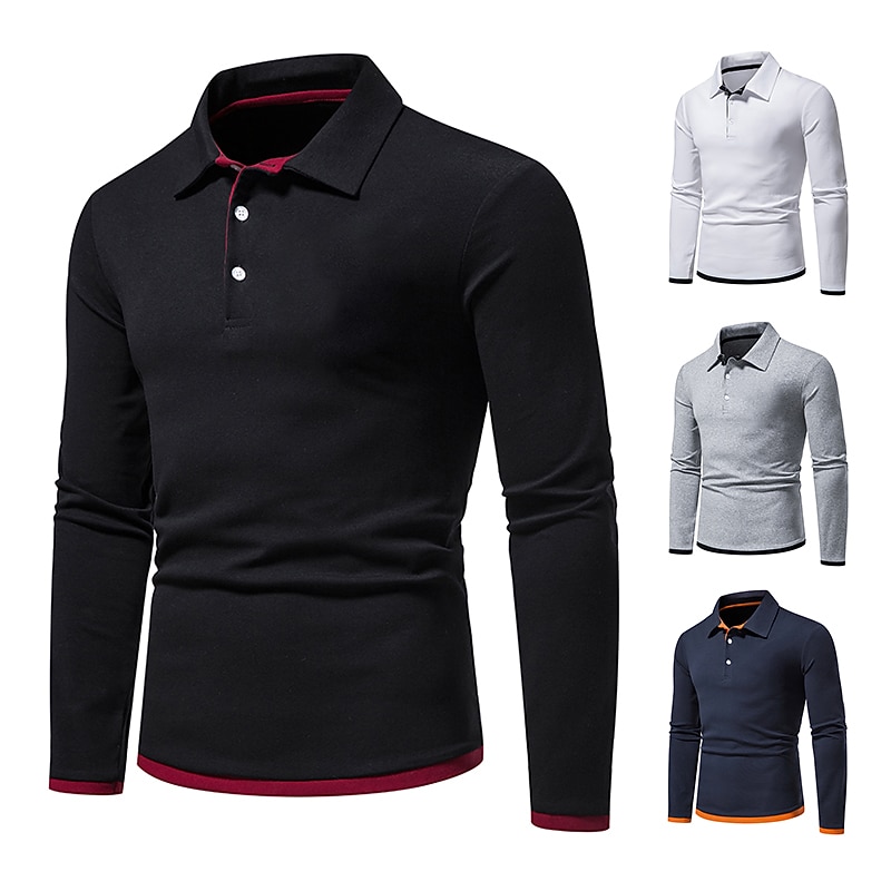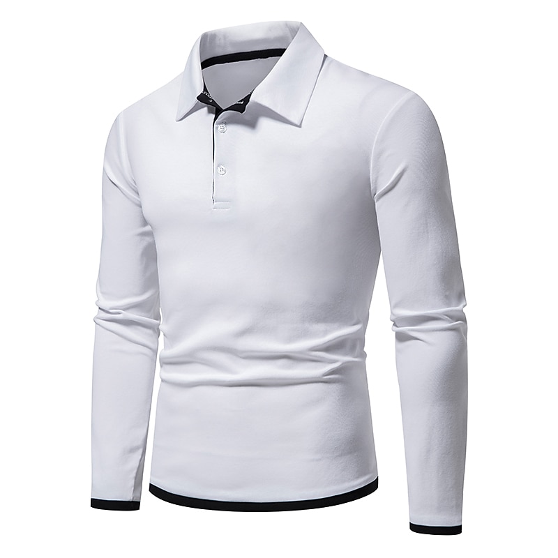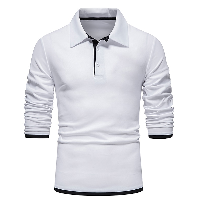 Highlights Men's Long Sleeve Polo Shirt - Versatile timeless for Spring & Summer Men's Long Sleeve Polo Shirt - Versatile Classic for Spring & Summer [Fabric] : Crafted from a durable polyester blend, these polo shirts ensure comfort with every wear. The fabric is micro-elastic, providing ease of movement while also being easy to care for with machine washability. [Fit] : Designed with a regular fit, these shirts offer a balanced silhouette that is comfortable across a range of body types. This fit is ideal for those who prefer a style that is neither too tight nor too loose. [Design Highlights] : Featuring a classic collar and button-down front, these polo shirts incorporate a color block pattern that adds visual interest. The structured collar keeps its shape over time, contributing to a polished appearance. [Occasions] : Perfect for daily casual wear or more laid-back golf outings, these polo shirts transition seamlessly from day-to-day activities to casual social gatherings. They can be dressed up or down depending on the occasion. [Size Range] : Available in a variety of sizes, from S to 3XL, ensuring a great fit for a diverse range of individuals. Choose from classic color options like White, Black, Navy Blue, and Light Grey to suit your personal style. Overall, these polo shirts combine practicality with style, making them a versatile addition to any wardrobe, perfect for the Spring and Summer seasons. Perfect for everyday use. first-class materials and excellent craftsmanship ensure long-lasting durability.