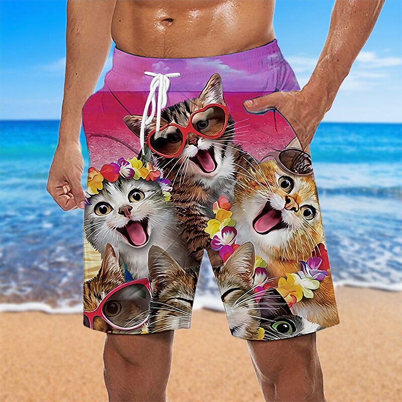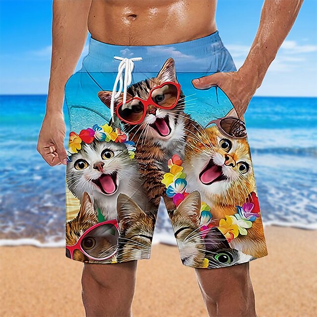 trending ! Men's Graphic Animal Cat Swim Trunks Swim Shorts Board Shorts Mid Waist Hawaiian Designer Boho Casual Daily Holiday Drawstring with Mesh lining Elastic Waist Designer Clothing Apparel