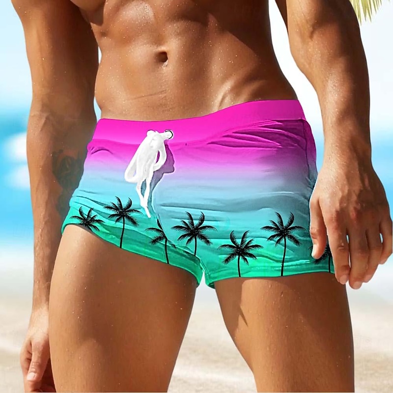 trending ! Men's Tree Coconut Tree Swim Trunks Swim Shorts Board Shorts Mid Waist Fashion Designer Surfing Holiday Beach Drawstring Pocket Elastic Waist Designer Clothing Apparel