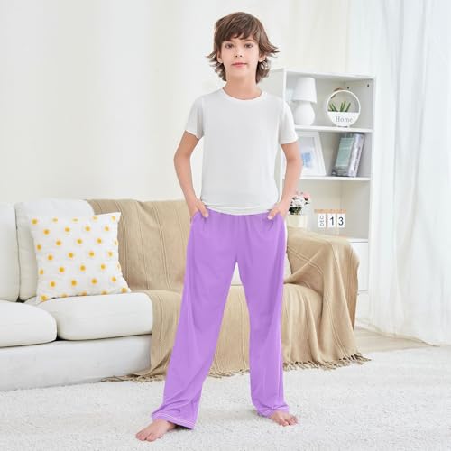 Lilac Boys Long Pants silky Trousers Elastic Waist Kids Lounge Bottoms with Pockets S-XL