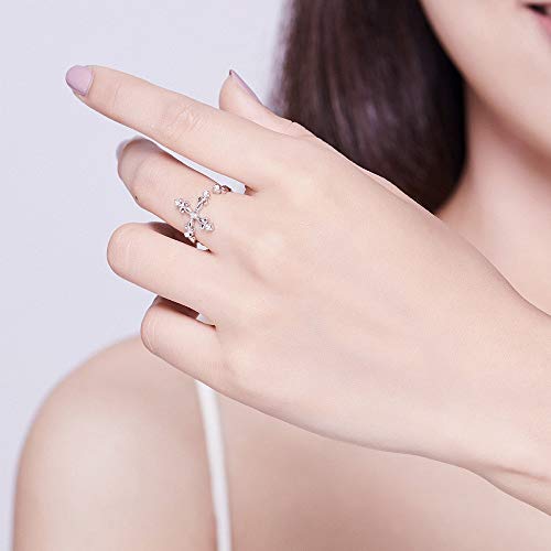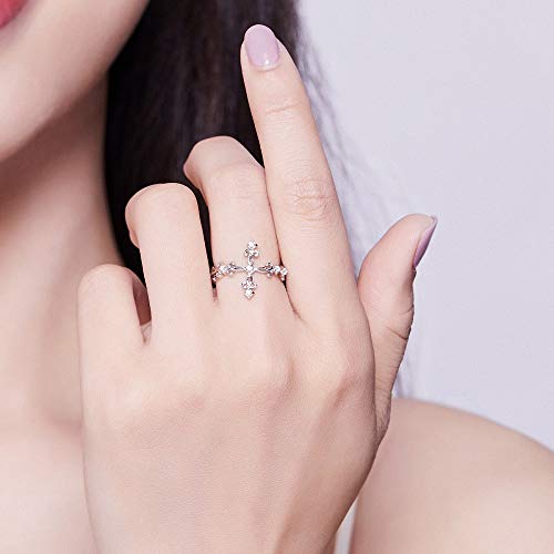 NewZenro Christian Faith CZ Cross 925 Sterling Silver Open Statement Rings Adjustable Eternity Wedding Band Fashion Dainty Filigree Flower Ring for Women