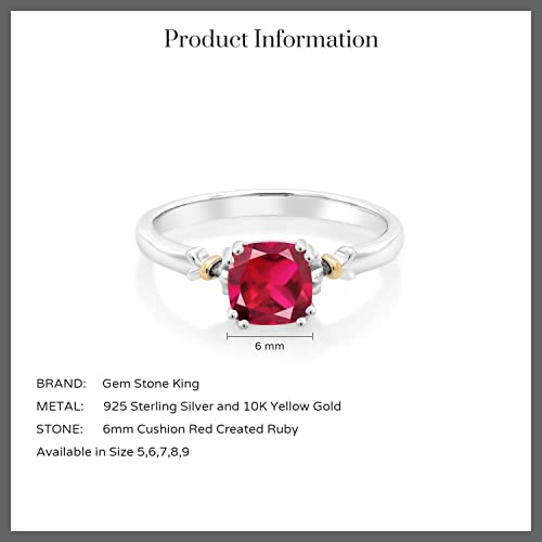 trending ! Gem Stone King 925 Sterling Silver and 10K Yellow Gold 6MM Cushion Cut Gemstone Birthstone Engagement Ring | Wedding Anniversary Promise Ring For Women | Available In Size 5, 6, 7, 8, 9