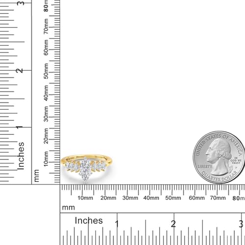 Ring size: 5Material: Gemstone, Two Tone Gold, Lab Grown DiamondMetal type: White Gold, Yellow GoldMetal weight: 1.9 gGem type: White lab grown diamondRadiant 1.00 Carat IGI-Certified Marquise-Cut Diamond with E-F Color and VS1-VS2 Clarity: This ring features a 1.00 carat marquise-cut lab-grown diamond, certified by IGI to meet stringent criteria for quality and authenticity. The near-colorless E-F Color grade and VS1-VS2 Clarity ensure exceptional brilliance and minimal inclusions. The marquise cut’s elongated shape enhances its sparkle and creates an elegant, lengthened look, making it a captivating centerpiece for any occasion.Exquisite Two-Tone Gold Setting: Carefully crafted with 14K solid yellow and white gold, this ring offers the perfect blend between modern elegance and classic design. The rich yellow gold contrasts beautifully with the icy white gold, creating a stunning visual effect that enhances the diamond’s brilliance. This luxurious two-tone setting makes the ring a versatile and stylish choice for any occasion.Sparkling Side Stones with DEF Color and VVS-VS Clarity: The band is adorned with six 4X2MM marquise-cut lab-grown diamonds, elevating the total carat weigth of the ring to 2.42 Ct. These stones feature pristine DEF color grades and virtually flawless VVS-VS clarity, ensuring exceptional brilliance. The side stones are perfectly set to complement the center diamond, enhancing the overall elegance and harmony of the design.Timeless Design for Lasting Beauty: This engagement ring features clean lines and graceful contours that balance contemporary style with classic refinement. Perfect for engagements, anniversaries, or milestones, this timeless design ensures lasting elegance. Its two-tone gold setting and dazzling diamonds make it a standout piece, ready to be cherished for generations.USA Based Company and Lifetime Warranty: As a USA-based company, we prioritize quality, craftsmanship, and customer satisfaction. Our commitment to excellence ensures that you receive a meticulously crafted product that meets the highest standards of design and quality. Our jewelry passes extensive quality checkpoints before being shipped to you. Enjoy prompt and professional support from our world-class customer service team, ensuring your satisfaction. Perfect for everyday use. premium materials and excellent craftsmanship ensure long-lasting durability.