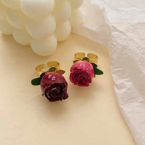 trending ! Retro Rose Flower Statement Open Ring Dried Floral Leaf Adjustable Stacking Wide Finger Bands Promise Eternity Wedding Rings Comfort Fit Enagagement Jewelry Gifts for Women Girls Wife