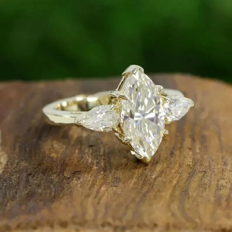 - AARK & CO 2.50Ct Marquise Cut White Diamond Solitaire Three Stone Woman's Engagement Ring 14K Yellow Gold Finish