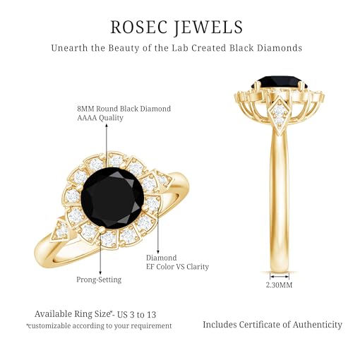 Ring size: 3Material: 10K Solid Gold, Lab Grown Black Diamond, Lab Grown DiamondMetal type: White GoldGem type: Created Diamond, Lab Grown Black DiamondItem type name: Engagement RingsElevate tradition with a current twist with this luxurious Lab Grown Black and White Diamond Ring that dares to be different and dazzles with sophistication. This Floral Halo Engagement Ring is as timeless as your enduring love and devotion.Lab Grown Black Diamond is associated with authority and power. This dark and bold gemstone symbolizes wealth, power and royalty giving an extra edge to every look.Quality Assurance- 10K Solid Gold; Lab Grown Black Diamond Quality: AAAA ; Total Lab Grown Black Diamond Carat : 2.16 (Approx.); Lab Grown Diamond Quality: EF-VS ; Total Lab Grown Diamond Carat : 0.23 (Approx.)Safe and Secure Packaging - All of our jewelry items arrive in high-end signature jewelry box, ensuring they are ready for proposals/gifting purpose so that you don't have to spend any time in packing them.Shop with Confidence - Rosec Jewels assures you to get Peoples heads turned with our sparkling jewelry pieces which are authentically certified just for your peace of mind. sku:-RCRI122310195 Perfect for everyday use. premium materials and excellent craftsmanship ensure long-lasting durability.