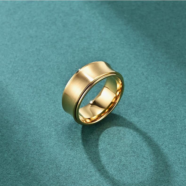 Hebrew Laser Engraved Customize Stainless Steel Ring, Rotating Concave Ring Brushed Judaism 9MM Wedding Band Ring, Size 5 to 11