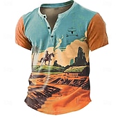 More information about Men's Cowboy T shirt Henley Shirt Short Sleeve 3D Print Retro Vintage Western Style Street Casual Daily Summer Spring Blue Green Henley Henley T-Shirt