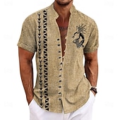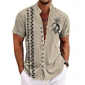 More information about Men's Ethnic Kokopelli Shirt Button Up Shirt Short Sleeve Casual Tribal Vacation Daily Summer Spring Grandad Collar Band Collar Buttons Print Pink Blue Green Khaki Beige