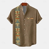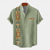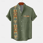 trending ! Men's Shirt Button Up Shirt Short Sleeve Vintage Casual Tribal Vacation Daily Summer Spring Band Collar grandad collar Print Dark Green Green Khaki
