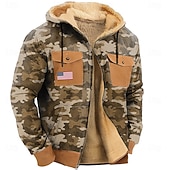 Men's Camo Camouflage American US Flag Fleece Hoodie Hoodies Fashion Cool Long Sleeve Hooded Hunting Streetwear Blue Green Zipper Pocket Fall Winter Designer