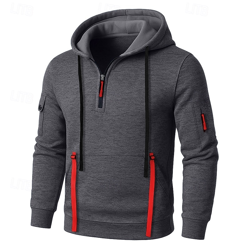 trending ! Men's Hoodie Quarter Zip Hoodie Fleece Hoodie Tactical Hoodie Black Burgundy Navy Blue Blue Gray Hooded Plain Zipper Sports & Outdoor Casual Daily Streetwear Cool Sportswear Spring & Fall Clothing