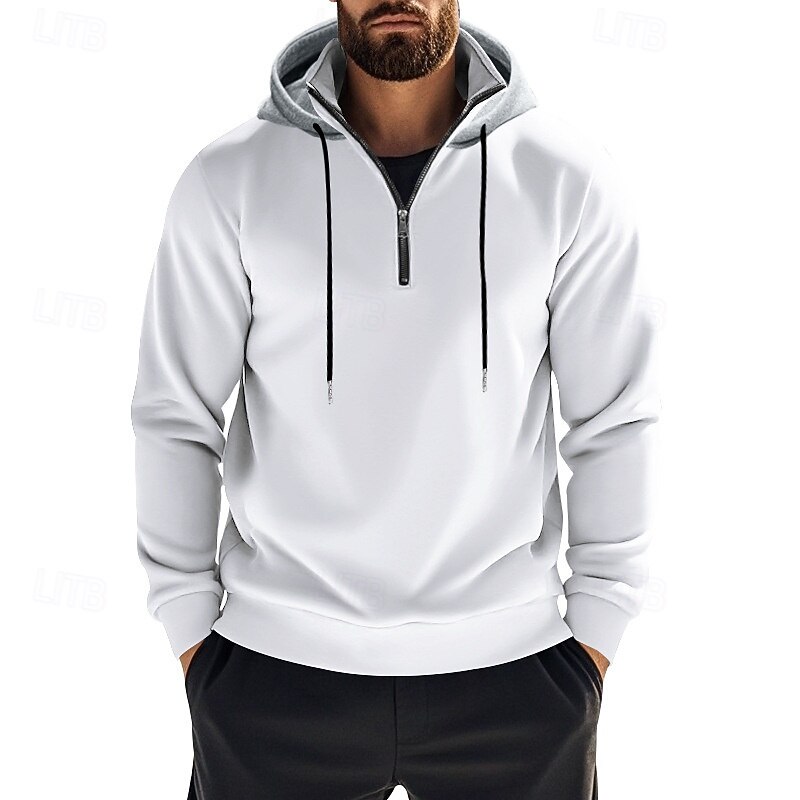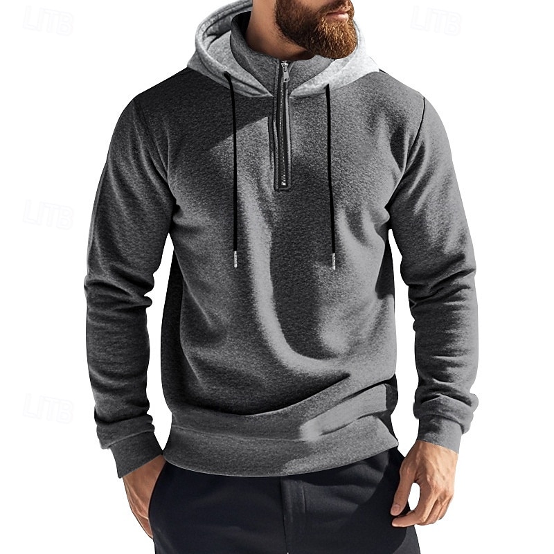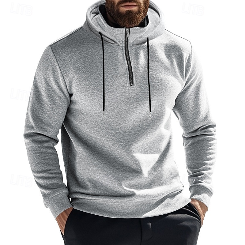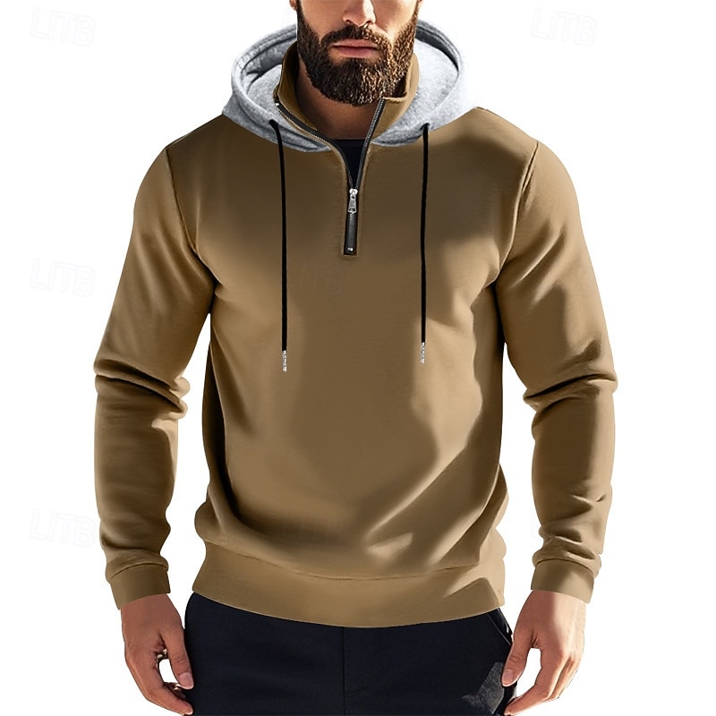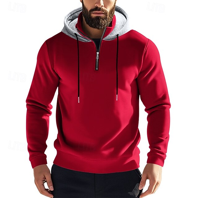 More information about Men's Hoodie Quarter Zip Hoodie Apricot Black White Wine Red Hooded Plain Drawstring Sports & Outdoor Daily Holiday Polyester Streetwear Basic Casual Spring & Fall Clothing Apparel Hoodies